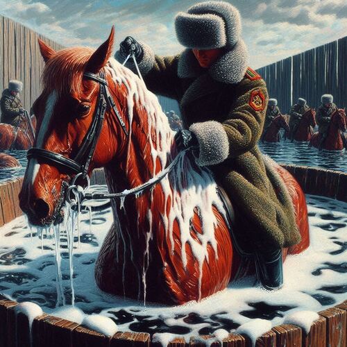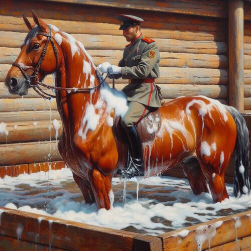 Washing the red stallion