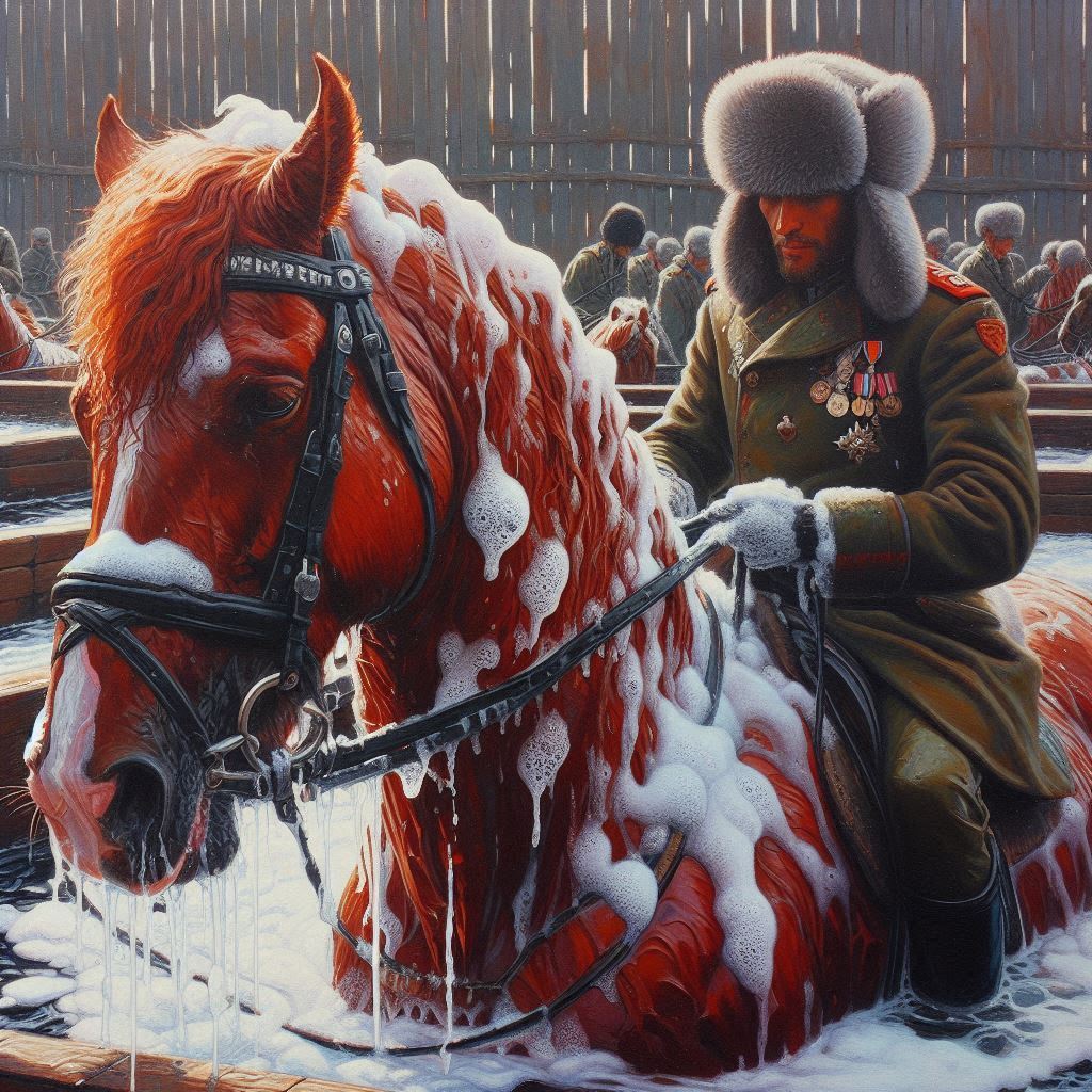 Washing the red stallion
